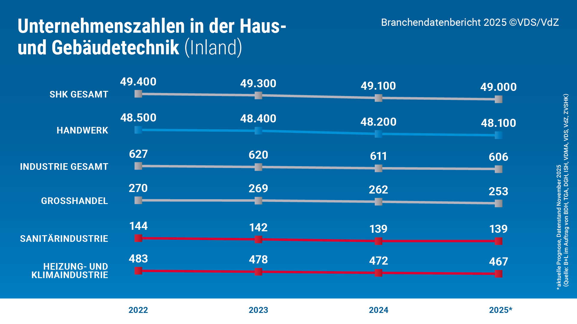 Die Branchendaten Haus- und Gebäudetechnik werden von der VDS – Vereinigung Deutsche Sanitärwirtschaft e.V.,
