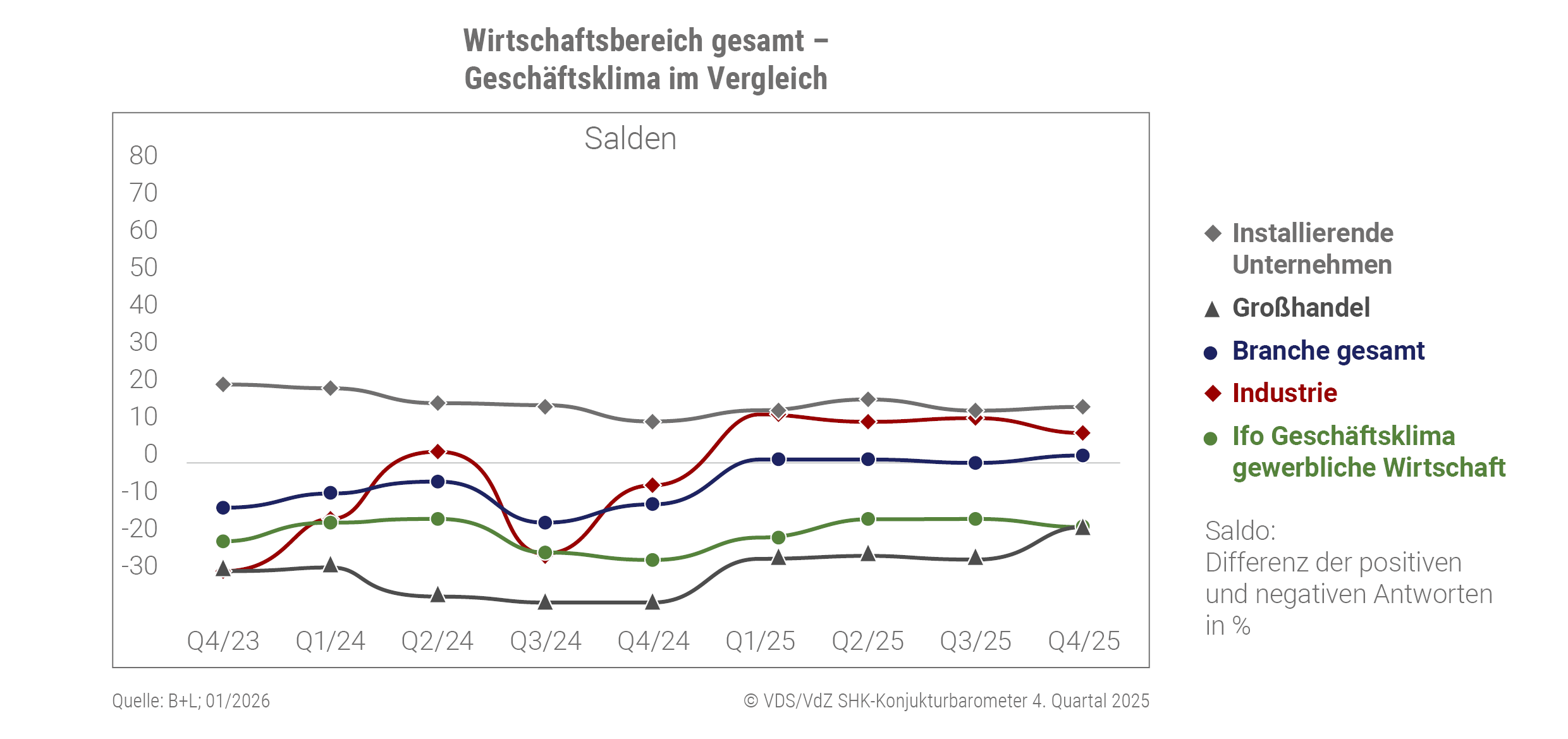 2025_Q4: Grafik „Geschäftsklima im Vergleich“ SHK-Konjunkturbarometer
