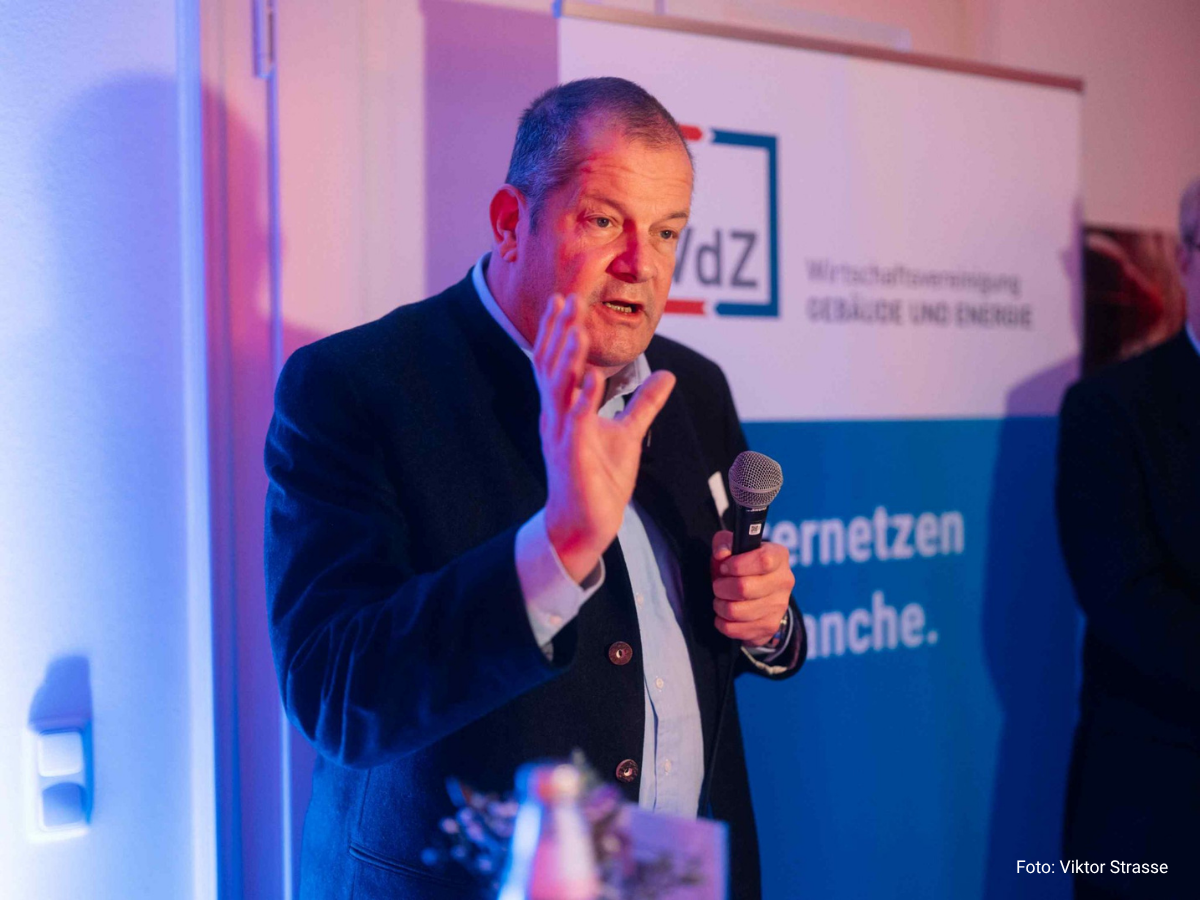 VdZ-Präsident Dr. Frank Voßloh und Geschäftsführer Jens J. Wischmann eröffneten den Abend mit klaren Worten zur aktuellen Marktsituation. Die SHK-Branche habe in den vergangenen Jahren Enormes geleistet, um Effizienz und Klimaschutz voranzubringen, stehe aber gleichzeitig vor großen Herausforderungen. Entscheidend sei nun, Vertrauen durch klare politische Rahmenbedingungen und Planungssicherheit zu schaffen – sowohl für Unternehmen als auch für Verbraucher. Stillstand in der Förderpolitik dürfe es nicht geben.