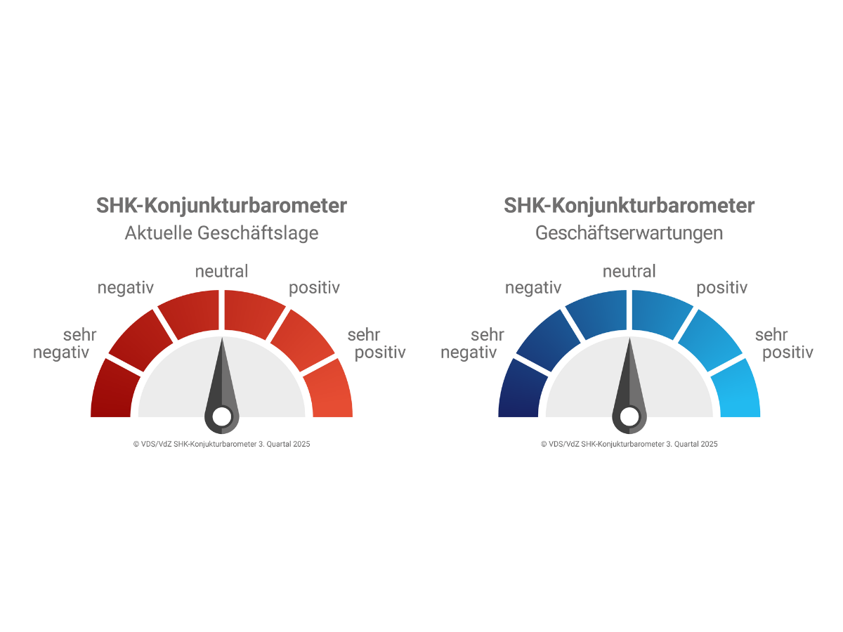 Das 3. Quartal 2025 hat keine weitere Verbesserung der konjunkturellen Einschätzung im Wirtschaftsbereich Haus- und Gebäudetechnik gezeigt. Nach der negativen Entwicklung des Jahres 2024 stagniert das Geschäftsklima aktuell im neutralen Bereich. Dennoch lässt sich von einer Trendumkehr ausgehen, wie beispielweise die Entwicklung im Bereich Sanitär oder auch die verbesserte Einschätzung seitens der Industrieunternehmen in Bereichen wie der Heiztechnik zeigen. Einem verbesserten Inlandsgeschäftsklima steht dabei eine Verschlechterung im Bereich des Auslandsgeschäfts gegenüber. Sowohl Geschäftslage als auch Geschäftserwartungen liegen im 3. Quartal 2025 im neutralen Bereich.