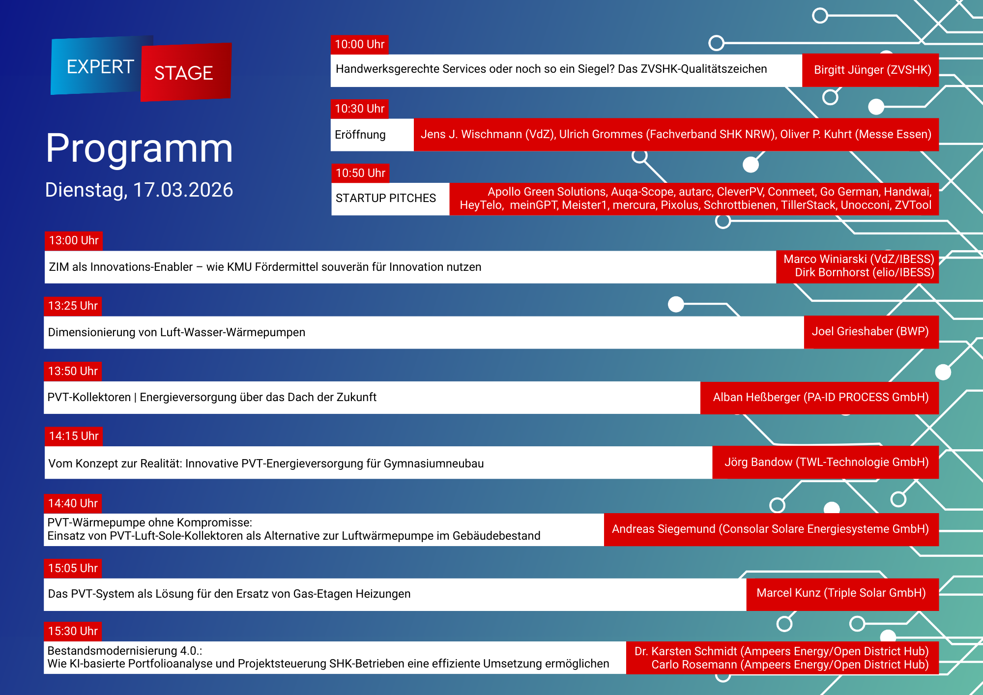 Mehr als 25 Startups präsentieren ihre Lösungen – von KI-Assistenz im Handwerksbetrieb bis zu datengetriebener Energieoptimierung. Einige sind auf beiden Messen vertreten, andere exklusiv vor Ort.