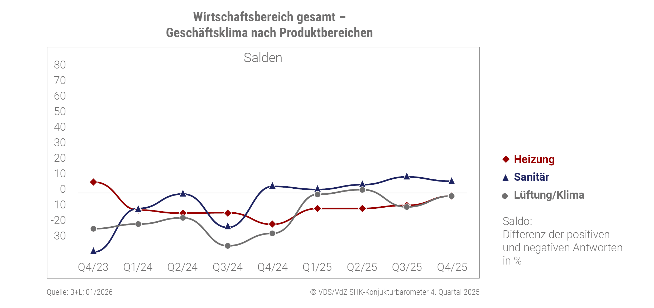 2025_Q4: Grafik „Geschäftsklima nach Produktbereichen“ SHK-Konjunkturbarometer